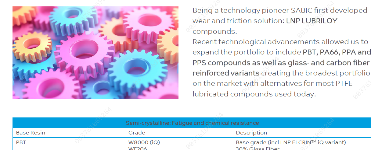 Being a technology pioneer, SABIC first developed wear and friction solutions LNP LUBRILOY compounds.